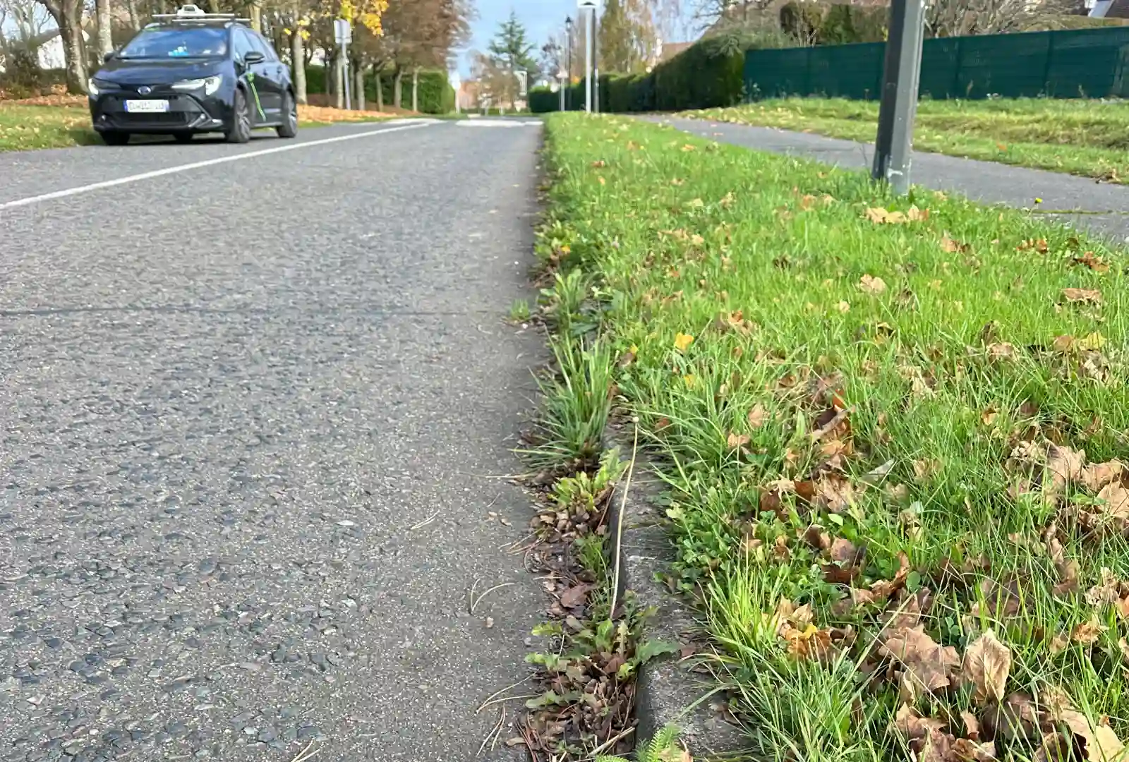 Intervention de balayage mécanique et de nettoyage des caniveaux afin d’éliminer boues, feuilles et résidus accumulés en bord de chaussée.